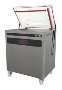 Envasadora al vacío sobremesa con ciclo controlado por tiempo, con barra de soldadura de 410 mm de largo, fabricada por Romagsa. Construcción en acero inoxidable con tapa de metacrilato. Bomba Busch de alto rendimiento de 10m3/h. Proceso de envasado automático controlado electrónicamente. Soldadura mediante pistón neumático. Atmósfera progresiva.